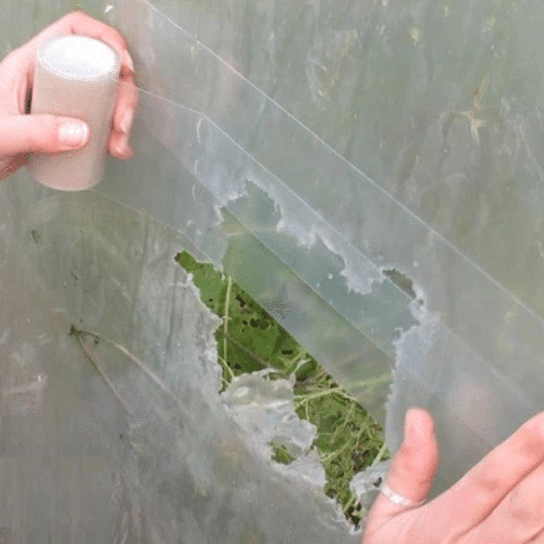 Sera naylonu ve örtülerin onarımı için özel olarak üretilmiş UV katkılı şeffaf tamir bandı.